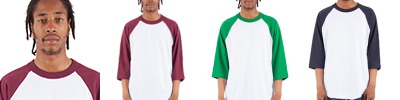 6 oz., 100% USA cotton, 18 singles; Heather Grey is 90% USA cotton/10% polyester; Charcoal Grey is 50% USA cotton/50% polyester; 1" double-needle stitched sleeve; Tear away label; Scalloped, merrowed bottom hem; Quarter-turned to eliminate center crease; Contrast raglan sleeves and neck binding;
