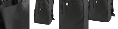 We merged the best features of a pack and a cinch to create this versatile backpack. 300 denier polyester, 210 denier polyester Drawstring top closure Interior hanging pocket with hook and loop closure for easy access to valuables Spacer mesh comfort straps with built-in grab handle and reflective trim Lightly padded back for structure and comfort Front slip pocket for easy decoration Reflective webbing tab on slip pocket and side mesh beverage pocket Dimensions: 20'h x 15'w x 5'd; Approx. 1,500 cubic inches Note: Bags not intended for use by children 12 and under.