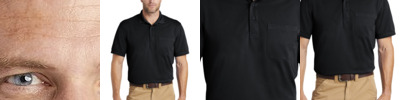 Engineered to overcome snags, moisture, odors and stains, this durable polo won't back down until the tough jobs are done. 6.5-ounce snag-proof polyester pique Tag-free label Flat knit collar 3-button placket with dyed-to-match buttons Left chest pocket Open hem sleeves Side vents Rental-friendly