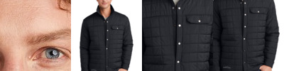 Midweight jacket warmth meets collared shirt style in this shirt jac that blurs the line between the great outdoors and indoors. Snap-front closure and snap cuffs. Drop-in left chest pocket. Contrast Eddie Bauer heat transfer logo on the right hem. Decoration access pocket. Made of 100% polyester fabric and 1.8-ounce, 100% polyester fill. Water-resistant with a PU coating.