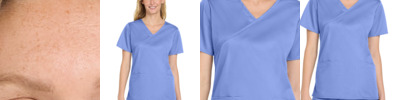 78/20/2 poly/rayon/spandex Wrap top neckline Front princess seams Shoulder badge loop Top-loading front pockets with interior pockets and pen slot Side vents Wink heat transfer logo at left pocket Modern fit