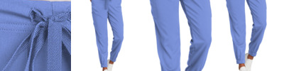 78/20/2 poly/rayon/spandex Flat front full drawstring and half-back elastic waistband Front slash pockets Cargo pockets with interior pocket and pen slot Single back pocket Jogger leg with elastic cuffs Wink heat transfer logo at front left pocket Modern fit 28-inch inseam