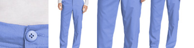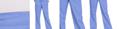 65/35 poly/cotton Mechanical stretch Flat front full drawstring and half-back elastic waistband Front slash pockets Right side cargo pocket Single back pocket Moderate flare leg with side vents 33-inch inseam Wink heat transfer logo at cargo pocket Classic fit