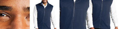 A smooth face, brushed back and coverstitching make this warm fleece vest a classier alternative to more casual fleece. Can be zipped in and secured by snap attachment inside an outer Collective layer 5.9-ounce, 100% polyester fleece Dyed-to-match and contrast coverstitch Slightly longer length Molded center front zipper Front reverse-coil zippered pockets