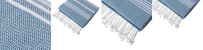 100% cotton Yarn-dyed stripe pattern White tasseled ends Dimensions: 39.5'w x 69.5'l; 7.7 lbs./doz.