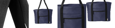 Whether you're going into the office or on a weekend trip, this tote has all the features you need to keep your technology safe and secure. 12-ounce cotton canvas with DWR finish Leather trim and details Metal zippered main compartment Padded laptop compartment Front pocket with snap closure Leather carry handles Side seatbelt webbing handles Leather zipper pulls with Brooks Brothers logo Exterior debossed Brooks Brothers leather label Luggage trolley pass through on back Laptop compartment: 11'h x 14'w Dimensions: 14'h x 15'w x 7'd Capacity: 1,792 cu. in./29.3 L Weight: 2.54 lbs./1.15 kg Note: Bags not intended for use by children 12 and under.