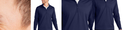 7.7-ounce, 89% recycled polyester/11% spandex interlock knit (solids) 7.7-ounce, 81% recycled polyester/8% polyester/11% spandex interlock knit (heathers) This product's carbon footprint has been measured and reduced through a combination of preferred materials and investing in carbon offset projects through the ClimeCo Certified Product Program Snag-resistant Moisture-wicking UPF rating of 50+ Forward shoulder Dyed-to-match, recycled, molded zipper with dyed-to-match rubber-tipped pull Angled front pockets with stitching detail Self-banded cuffs and hem Tag-free label