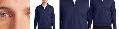 Go out to the game in this moisture-wicking hooded jacket. 3.5-ounce, 90/10 poly/spandex 100% poly tricot mesh insert Snag-resistant Tag-free label Attached hood Contrast tonal mesh panels at shoulder and under arms Front pouch pockets Adjustable fit at hem with side toggles