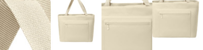 Smooth matte polyester with knitted cloth Zippered main compartment Dyed-to-match metal zipper pulls Front zippered pocket Dyed-to-match molded zippers Over-the-shoulder length webbing handles Luggage trolley pass through on back Dimensions: 13.75'h x 19'w (top) x 17'w (bottom) x 7'd Capacity: 1,831 cu. in./30 L Weight: 1.1 lbs./0.5 kg Note: Bags not intended for use by children 12 and under.