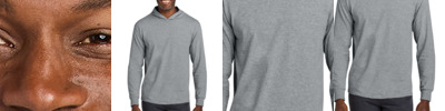 4.7-ounce, 100% cotton jersey 60/40 CVC cotton/polyester (Heathers, Safety Green, Safety Orange) 90/10 CVC cotton/polyester (Athletic Heather) Double-needle coverstitching on front neck and hood hem Shoulder to shoulder taping 1x1 rib knit cuffs Classic fit Tear-away label