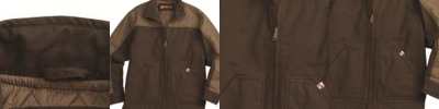 12 oz., 100% cotton quarry washed Boulder Cloth™ canvas; 3 oz., polyfil nylon-quilted lining; Corduroy collar, placket and chest pocket trim; Bi-swing back for full range of motion; Drop-tail hem; Ribbed gator cuff sleeves; Triple-needle stitching; Heavy-duty YKK metal zipper with easy-grab zipper pull;