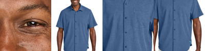Feel the breeze with ease in this ultra breathable, thoughtfully designed shirt that's ideal for the coast, the cabana or executive retreats. 3.3-ounce, 83/17 recycled polyester/spandex IslandZone ® moisture-wicking, quick-drying, travel-ready performance Two-piece stand collar Left chest pocket with subtle contrast bartack details Contrast embroidered Marlin logo at inner neck collar Raised contrast heat transfer Marlin logo at left hem Contrast heat transfer IslandZone logo at inner placket
