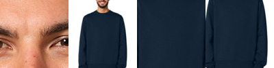 A premium crewneck with a classic look. Organic and recycled fabrics blend beautifully, offering cozy warmth with refined details that stand out from the crowd. 10.3-ounce (350 GSM) 80% organic combed ring spun cotton/20% recycled polyester brushed 3-end fleece, cotton face 1x1 rib knit collar, cuffs and hem Single-needle topstitch at collar Herringbone back neck taping Self-fabric half moon at back neck Double-needle topstitch on armholes, cuffs and hem seams 100% recycled polyester tear-away label Colors up to 5XL: Black, French Navy, Heather Grey, Natural Raw, Stargazer, White Natural Raw: Made with uncleaned carded fibers for a natural look and feel with minimal processing. Some surface pilling may occur, which is normal and won't affect the quality. Modern medium fit: Designed for a roomier fit, opened up across the chest and shoulders.