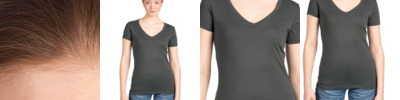 4-ounce, 60/40 combed ring spun cotton/polyester, 30 singles 1x1 rib knit V-neck collar Shoulder to shoulder taping Tear-away label Side seamed Fitted