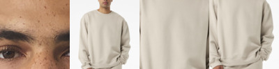 Relaxed fit Double-needle stitched neck Slightly dropped set-in sleeve Interior brushed fleece Side seamed Tear-away label 10-ounce, 60/40 Airlume combed and ring spun cotton/polyester fleece Athletic Heather: 94/6 Airlume combed and ring spun cotton/polyester
