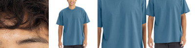 4.3-ounce, 100% combed ring spun cotton, 32 singles 90/10 cotton/polyester, 32 singles (Heather Gray) 1x1 rib knit crewneck collar Shoulder to shoulder taping Tear-away label Side seamed Curved hem