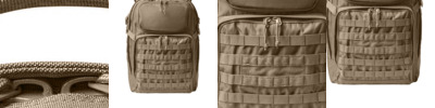 600D polyester canvas 210D polyester lining Dyed-to-match coil zippers with corded pulls (Coyote Brown, Black) Black coil zippers with corded pulls (Black Ink Camo) Large main compartment with padded laptop pocket Hydration port Reinforced web carry handle Ergonomic, padded shoulder straps with daisy chain Adjustable, quick-release buckle sternum strap Padded air mesh back panel Top valuables pocket Lower front zippered office pocket with daisy chain and loop panel for badges and patches Quick-release side compression straps Laptop compartment: 14.375'h x 12.25'w; fits most 17' laptops Dimensions: 19.25'h x 12.25'w x 7.75'd Capacity: 1,952 cu. in./32 L Weight: 3 lbs./1.35 kg Note: Bags not intended for use by children 12 and under.